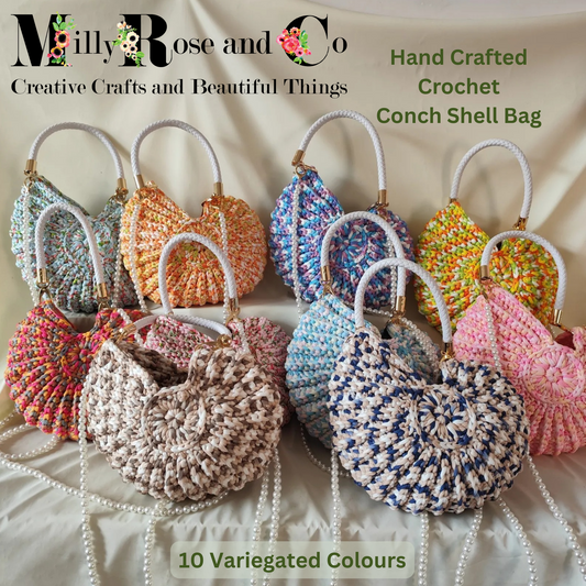 Crochet Nautilus Shell Hand Bag Handmade Shell Cross Body Variegated Colour Novelty Conch Bag Pearl Chain Gift Idea