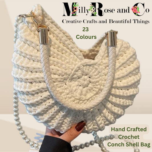 Crochet Shell Bag Handmade Nautilus Shell Cross Body Conch Shell Bag Pearl Chain Woven Arm Strap 5 colours Gift Idea