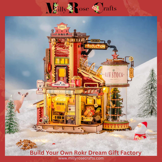 Rokr Dream Gift Factory 3d Wood Puzzle Music Box Kit Christmas Village Scene Kit Adults 14+ Puzzle with LED Light & Music Executive Toy Gift