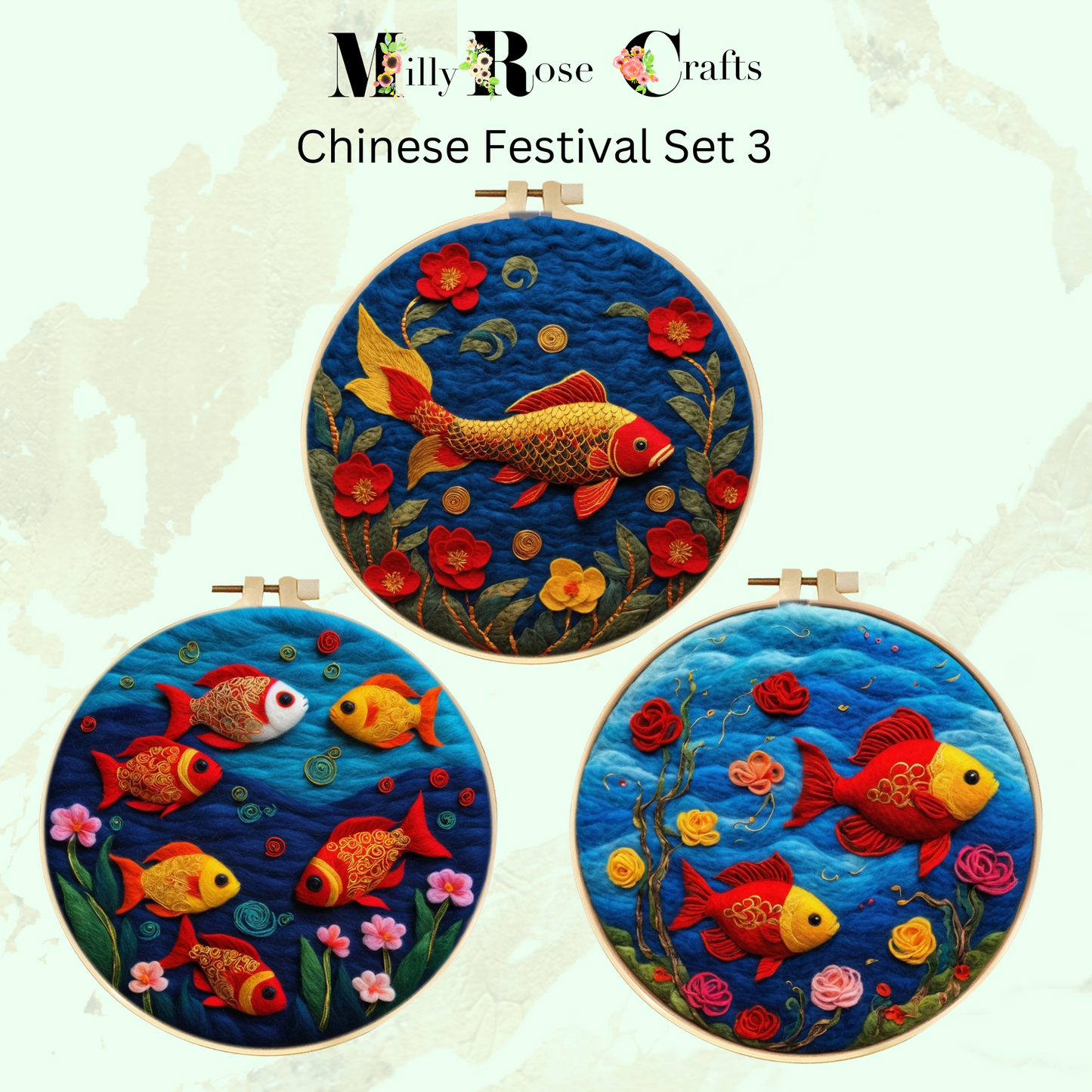 2d Needle Felting Kit, Set 3 of 5 Chinese Festival Theme Koi Wool Painting Kit Adult Beginner Friendly Chinese Dragon Needle Felting Craft Kit