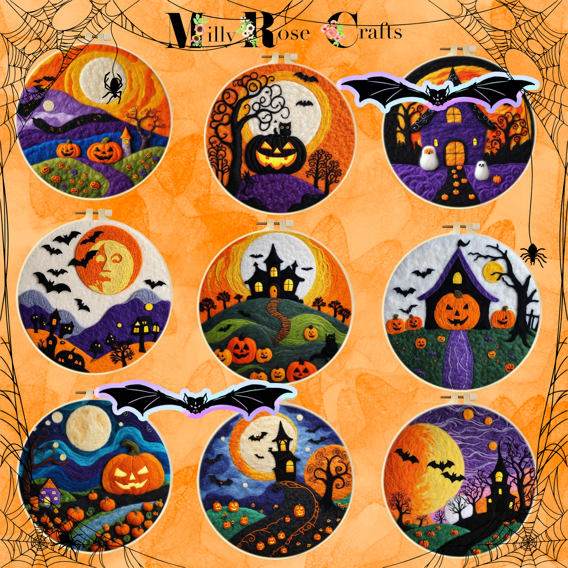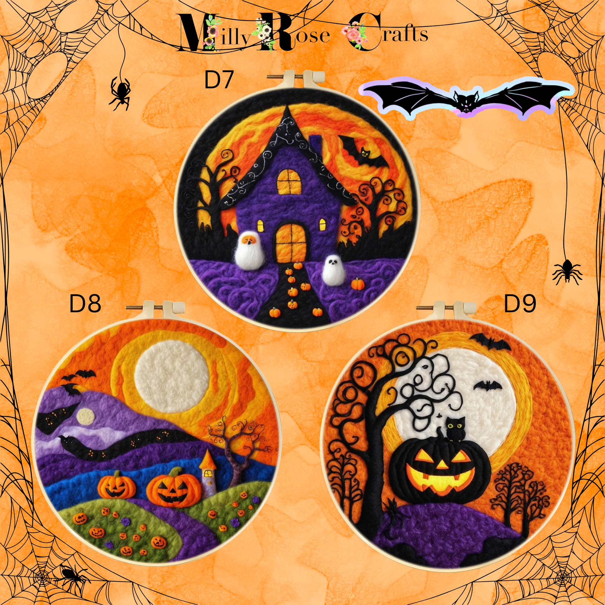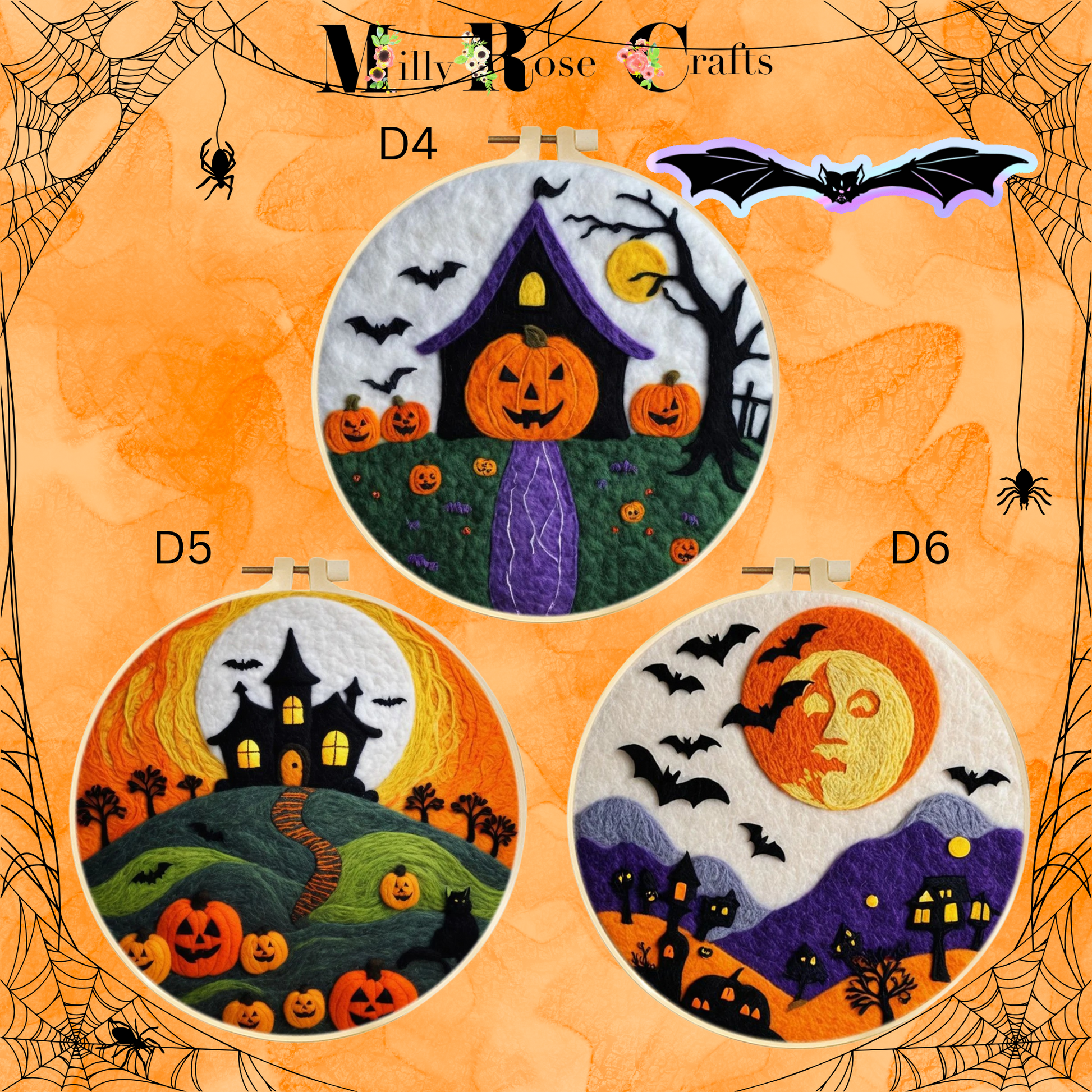 Spooky Halloween 2D Needle Felting Kit Set 1 Adult Beginner Bats Pumpkin Haunted House Wool Painting Kit Complete Felting Kit Craft Gift Idea