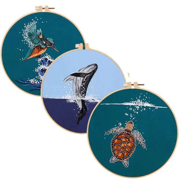 Have fun, find your inner creativity and lose yourself in our Kingfisher Whale Sea Turtle Swan Embroidery kits