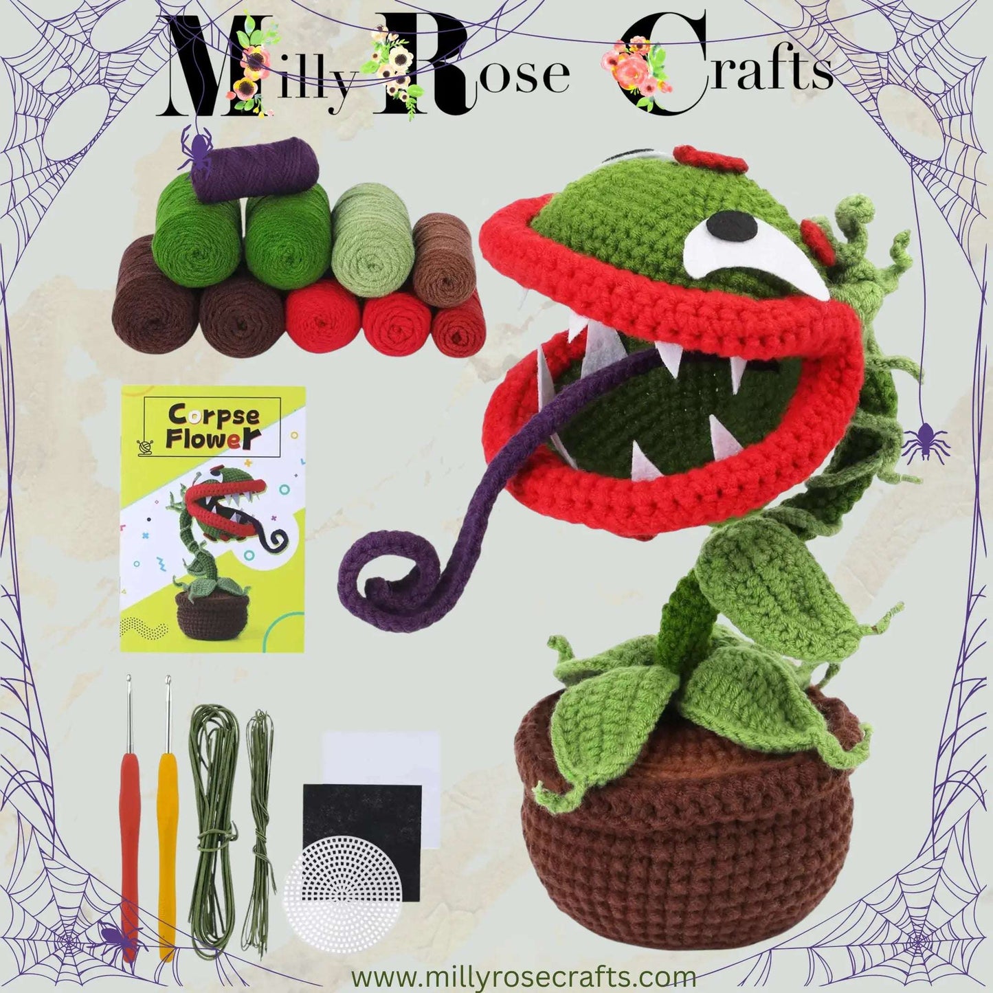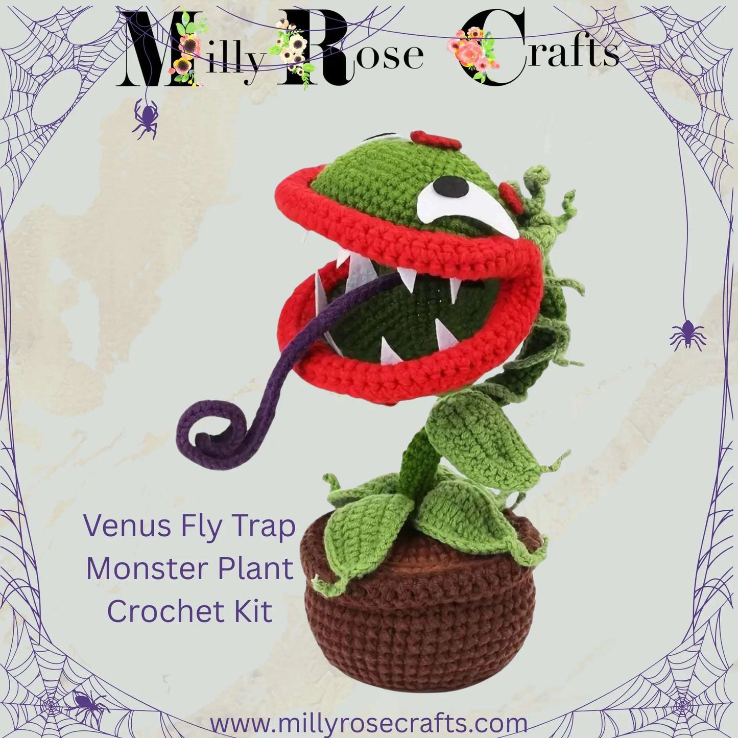 Halloween Venus Fly Trap Monster Plant Crochet Kit Spooky 'Feed Me!' Beginner-Friendly Craft Project, Handcrafted Fun Adults Amigurumi kit