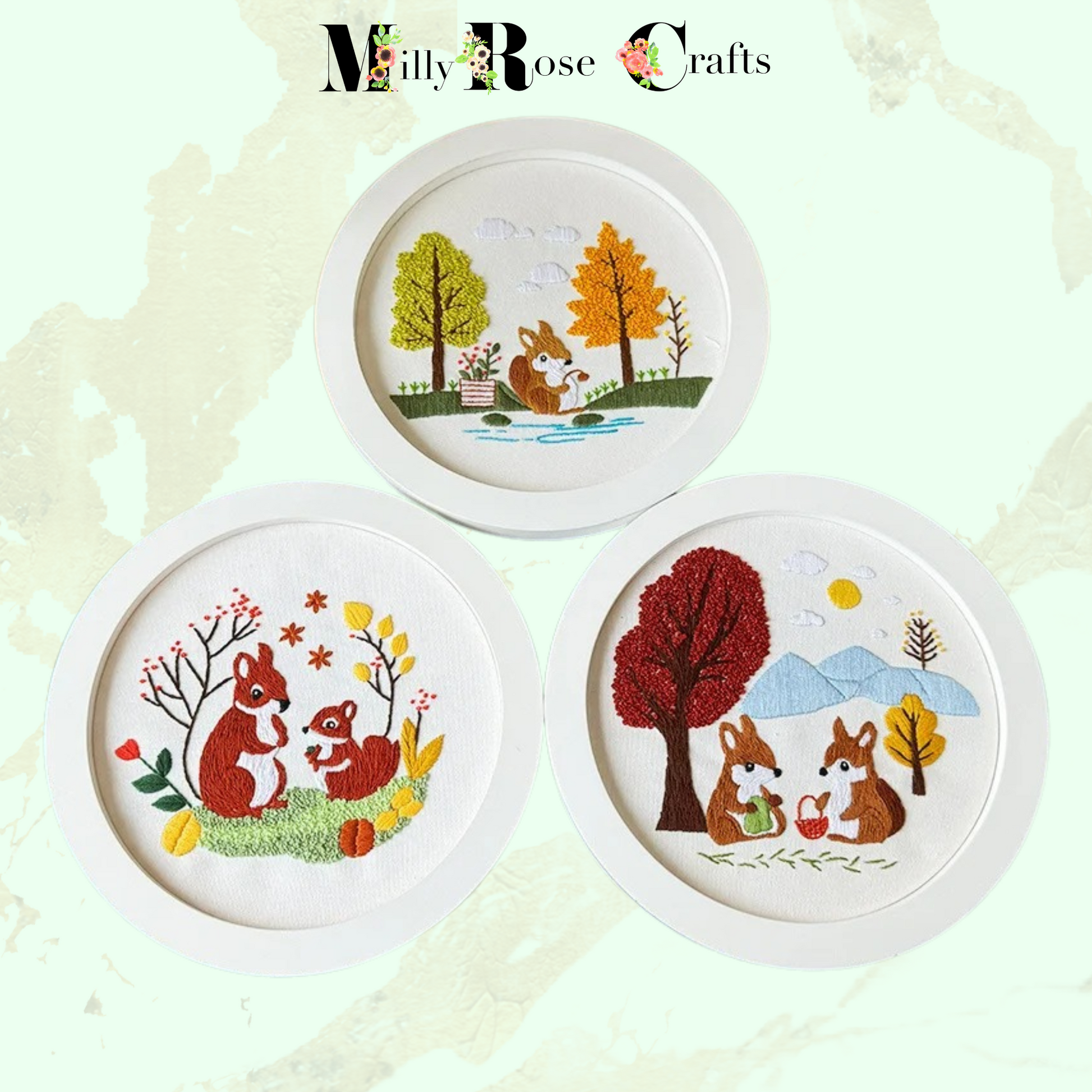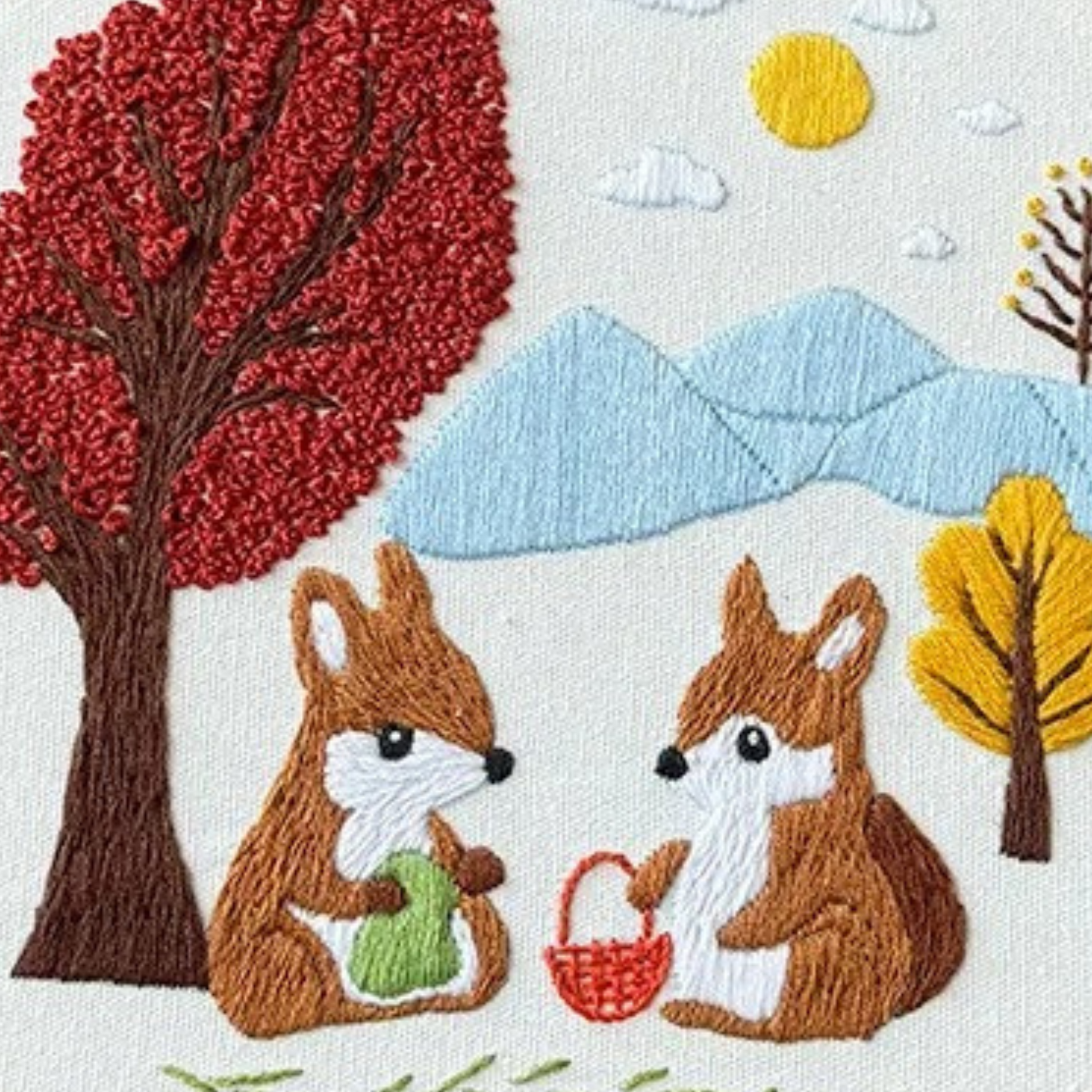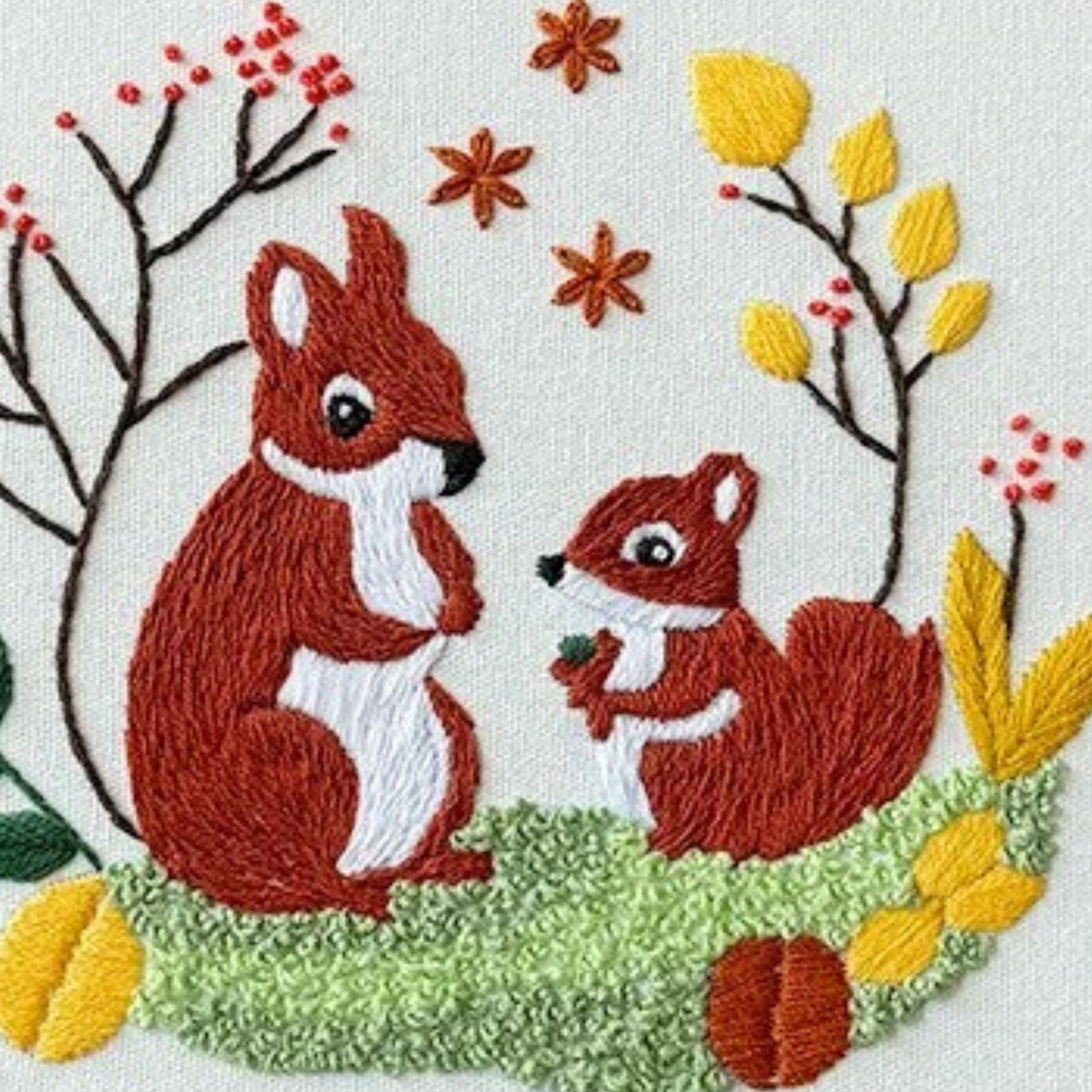Whether you're looking to unwind after a long day or seeking a fun project, our Squirrel embroidery kits are an ideal beginner embroidery choice.