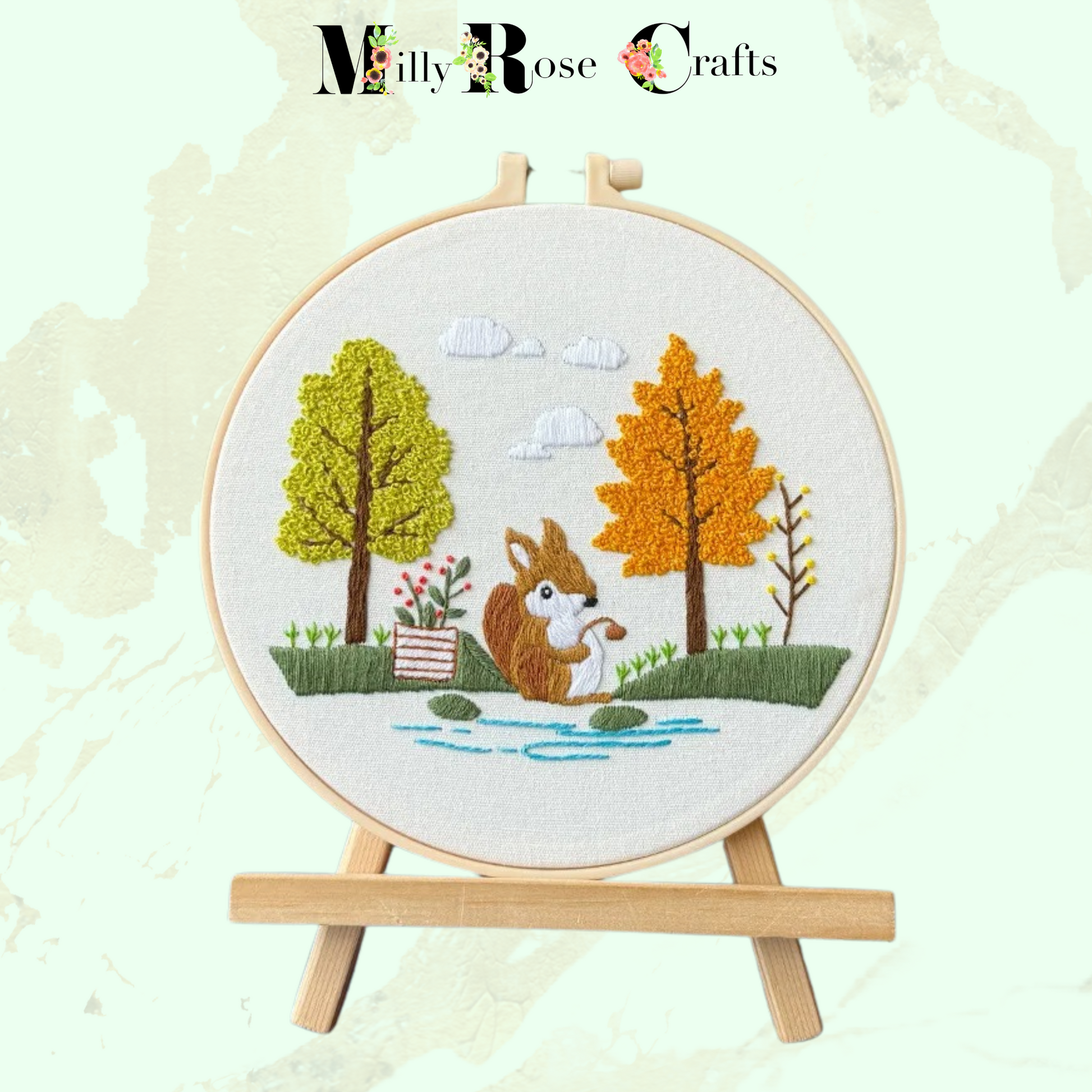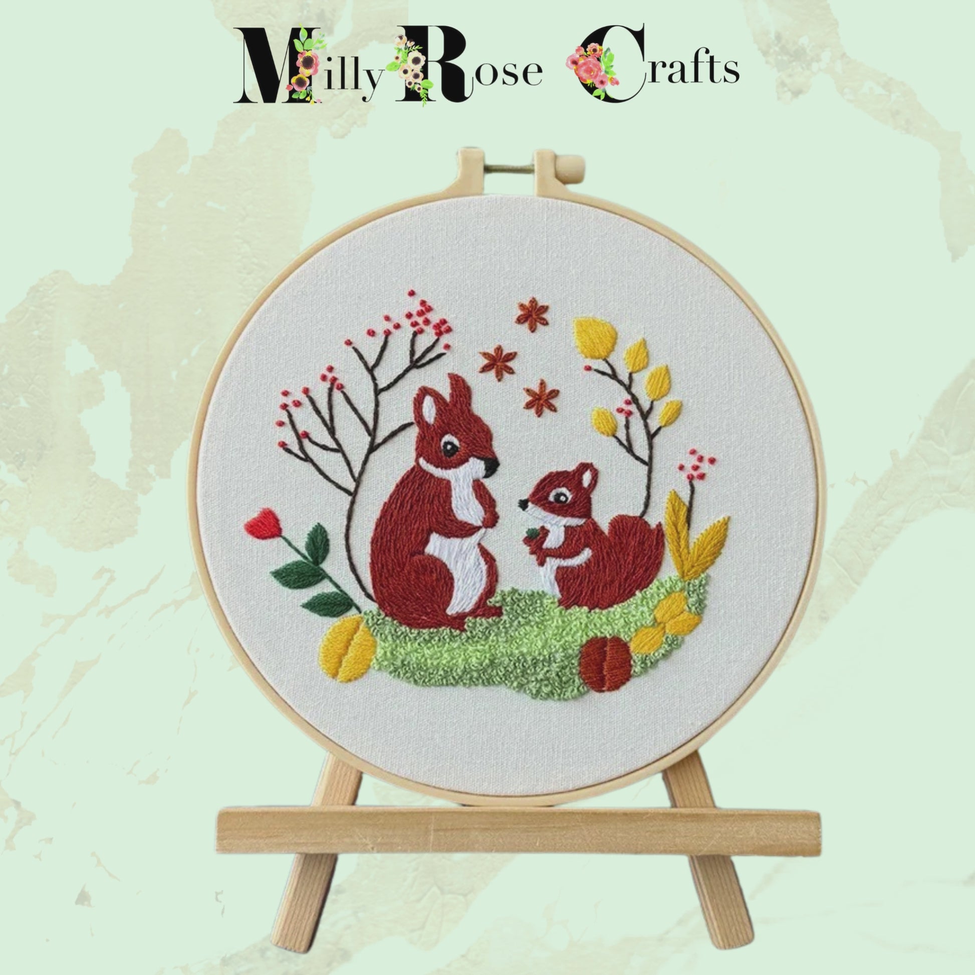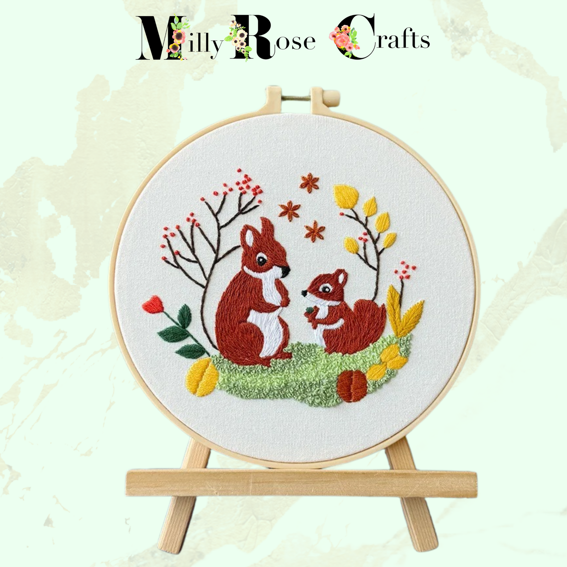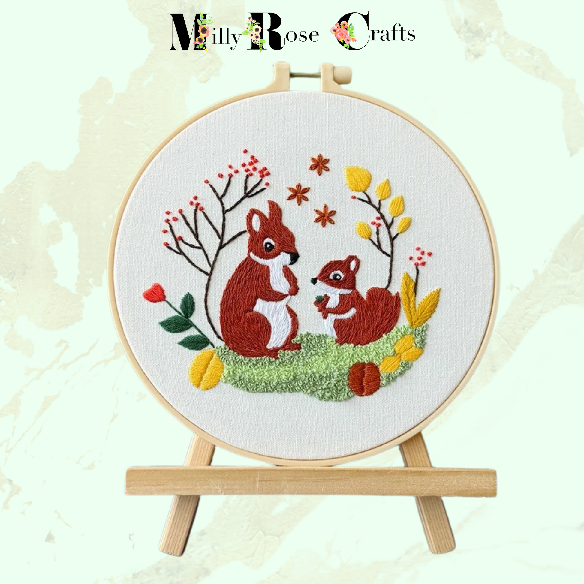 Cute Squirrel Embroidery Kit: Craft Your Own Adorable Wall Art