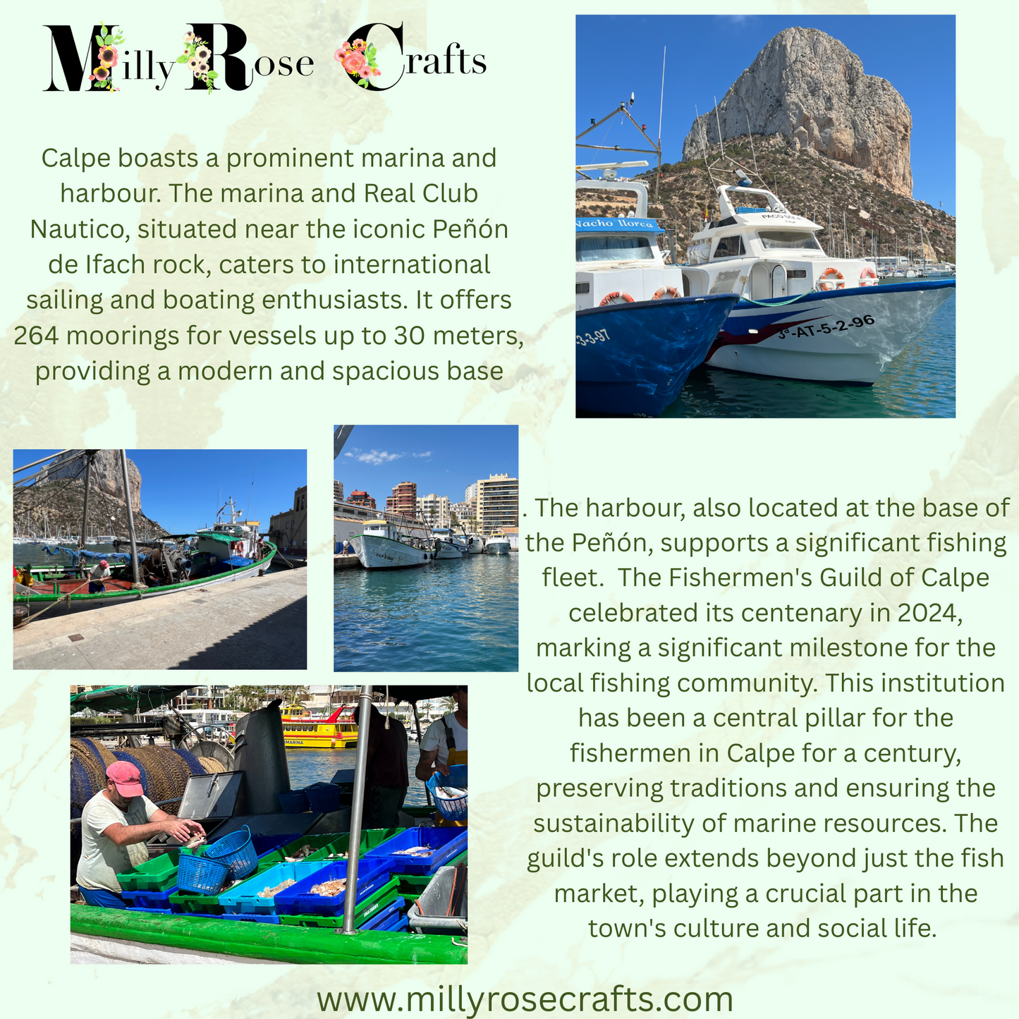 Relive the charm of Calpe with one of our exclusive Calpe embroidery kits, designed by MillyRose Crafts! This unique piece captures the majestic Peñón de Ifach (Calpe Rock) as seen from Calp harbour and port, home to the Pescadores de Calpe and their fishing boats.