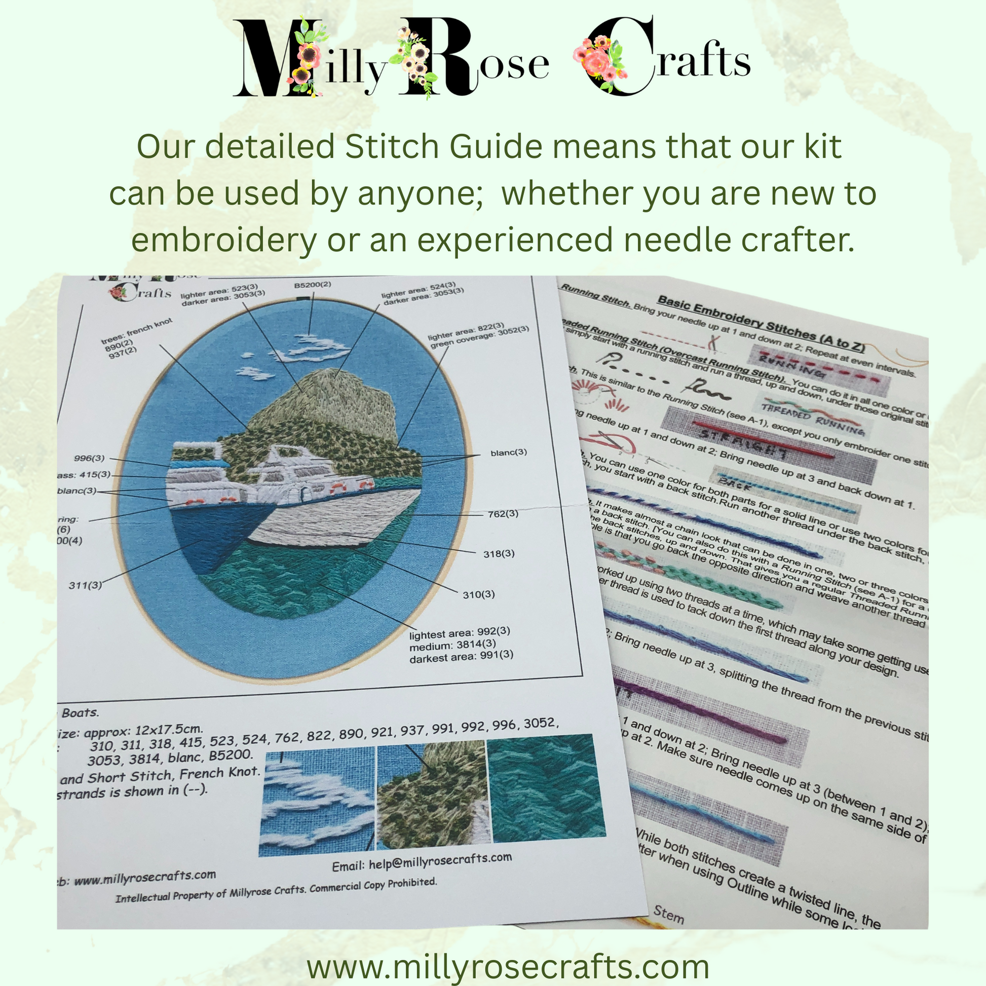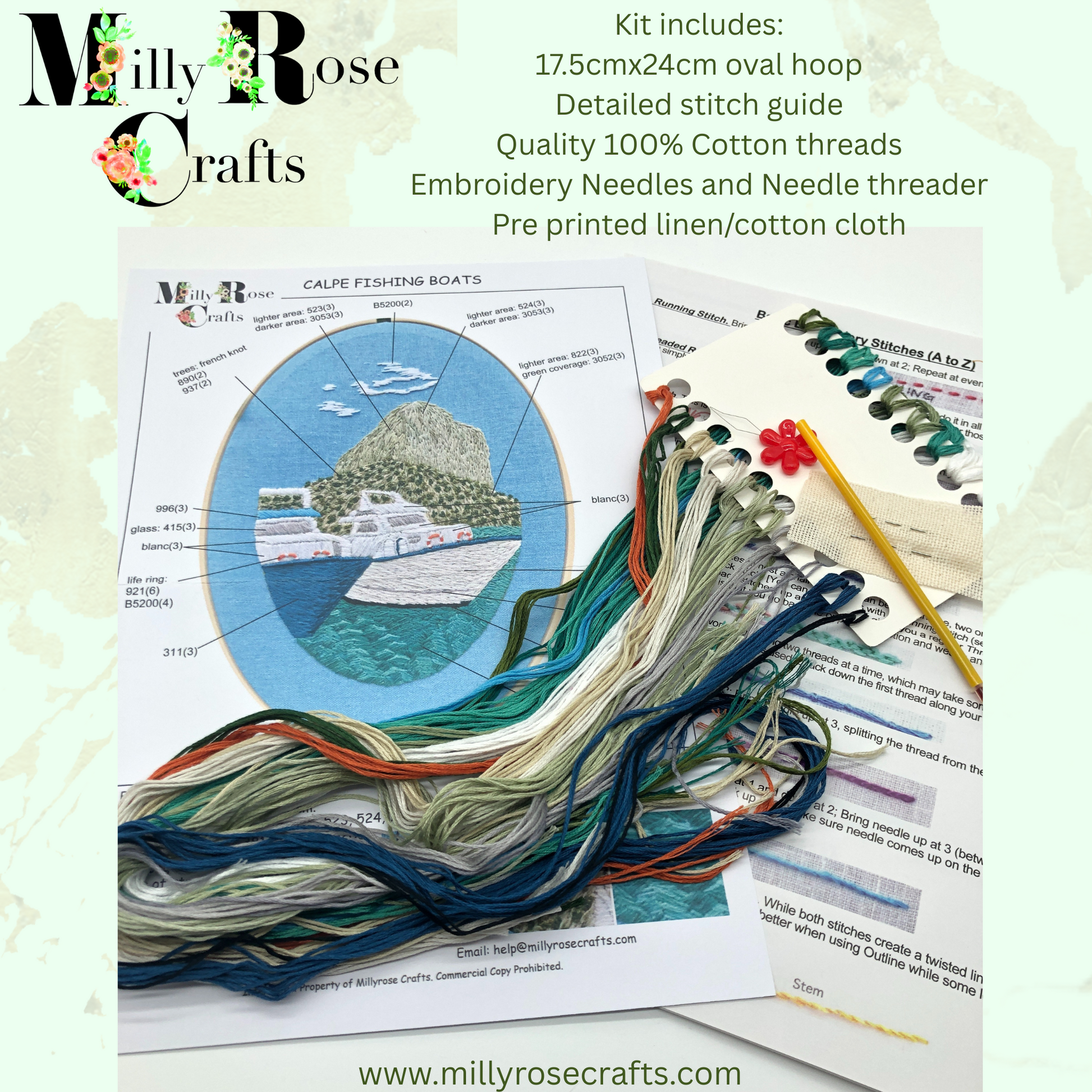 Embroider Your Own Calpe Memory: MillyRose Crafts "Calp Fishing Boats and Penon de Ifach" Embroidery Kit